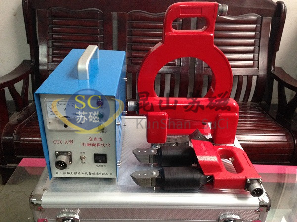 CEX-A型多用磁粉探傷儀,是我公司“蘇磁"系列推出的系列產(chǎn)品之一,它除具有便攜式機(jī)種一切優(yōu)點(diǎn)外,還具有移動(dòng)式機(jī)種的某些長(zhǎng)處,儀器面板下部裝有輸出插座,可分別供給D型、A型探頭和O型環(huán)探線圈所需的交流電流。直流輸出只可用于A型和D型磁軛探頭對(duì)工件進(jìn)行直流磁化,直流檢測(cè)時(shí)請(qǐng)將交流/直流撥檔開關(guān)撥至直流檔,此時(shí)輸出航空插座可連接A或D型探頭;交流檢測(cè)時(shí)請(qǐng)將交流/直流撥檔開關(guān)撥至交流檔,此時(shí)輸出航空插座可連接D、A、O型中的任一種探頭。A型探頭:也稱馬蹄磁軛探頭或角焊縫探頭,活動(dòng)關(guān)節(jié)斜面磁頭,配有工作燈;對(duì)異形面、形狀復(fù)雜工件探傷尤其適用.極距:20-160㎜;提升力:AC≥4.5㎏,DC≥18㎏;重量:2.0㎏。利用這種探頭制成一臺(tái)設(shè)備叫馬蹄形磁軛探傷儀或角焊縫探傷儀,探頭利用活關(guān)節(jié)使用范圍廣。