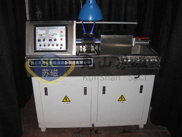 熒光磁粉探傷機是一種基于漏磁原理的磁力探傷方法。當磁力線通過鐵磁材料及其制品時,在其不連續處產生漏磁場,形成磁極。此時在干燥的磁粉上或澆鑄在磁懸浮上,磁極會吸收磁粉,產生用肉眼就能直接觀察到的明顯磁痕。因此,旋轉磁場探頭可以通過磁性標記顯示鐵磁材料及其制品的缺陷。磁粉探傷可以檢測出暴露表面上的小缺陷,這些小缺陷無法用肉眼直接觀察到,也無法借助放大鏡直接觀察到,或者是近表面的缺陷,這些缺陷沒有暴露出來,但埋在表面以下幾毫米的地方。該方法雖然也可用于檢測孔洞、夾雜物、不完全焊接等體積缺陷,但對面積型缺陷更為敏感,更適合檢測淬火、軋制、鍛造、鑄造、焊接、電鍍、磨削、疲勞等引起的裂紋。
