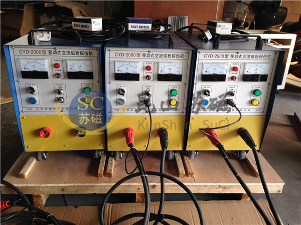 采用交流或交直流磁化電源,儀器配滾輪移動(dòng),可現(xiàn)場(chǎng)使用或安放在固定位置使用;